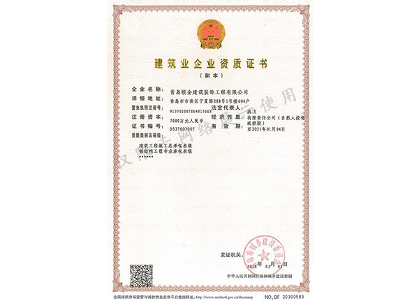 建筑幕墻工程設(shè)計(jì)專(zhuān)項(xiàng)甲級(jí) 鋼結(jié)構(gòu)工程施工總承包貳級(jí)