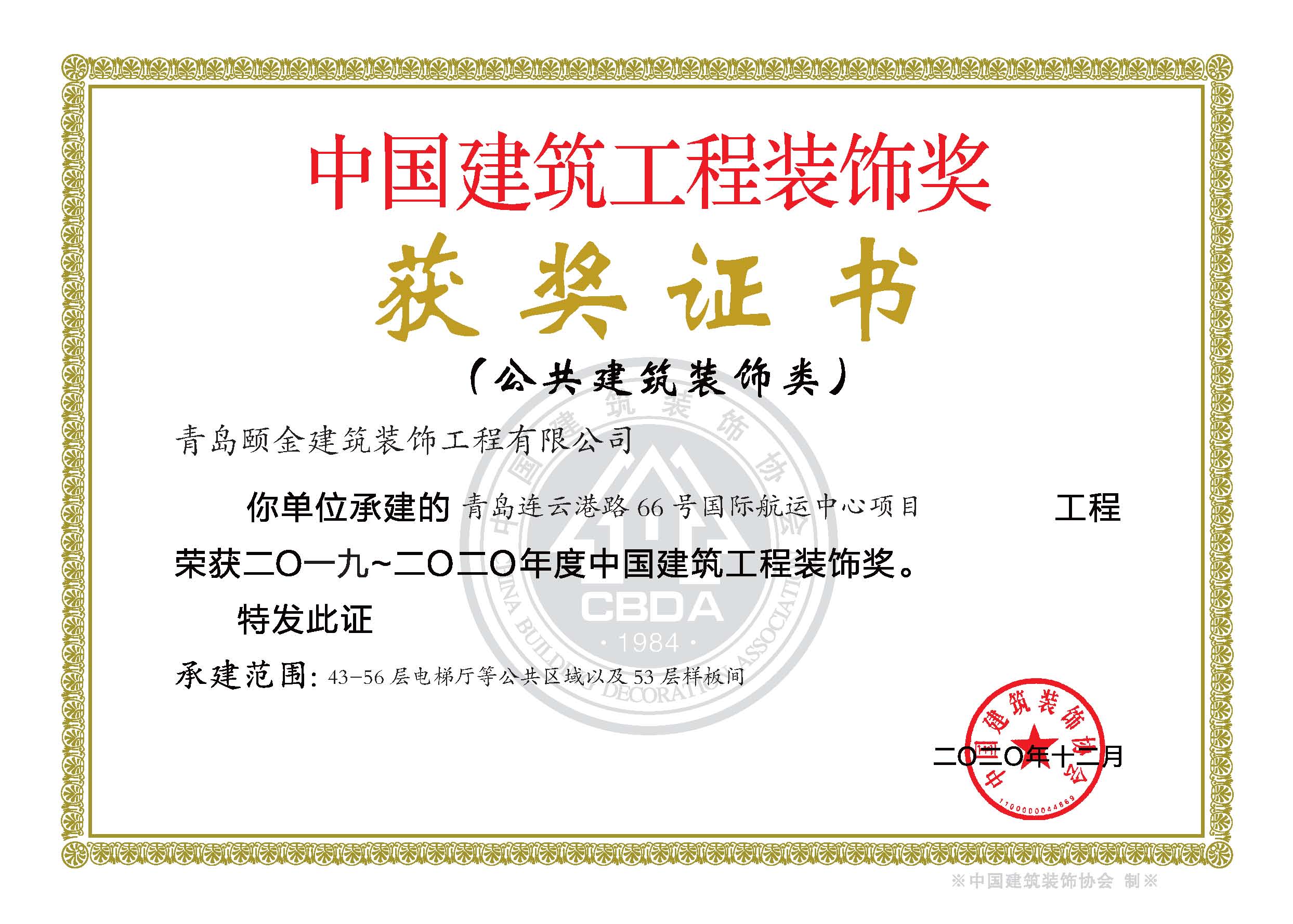 全國建筑裝飾行業(yè)科技創(chuàng)新成果獎