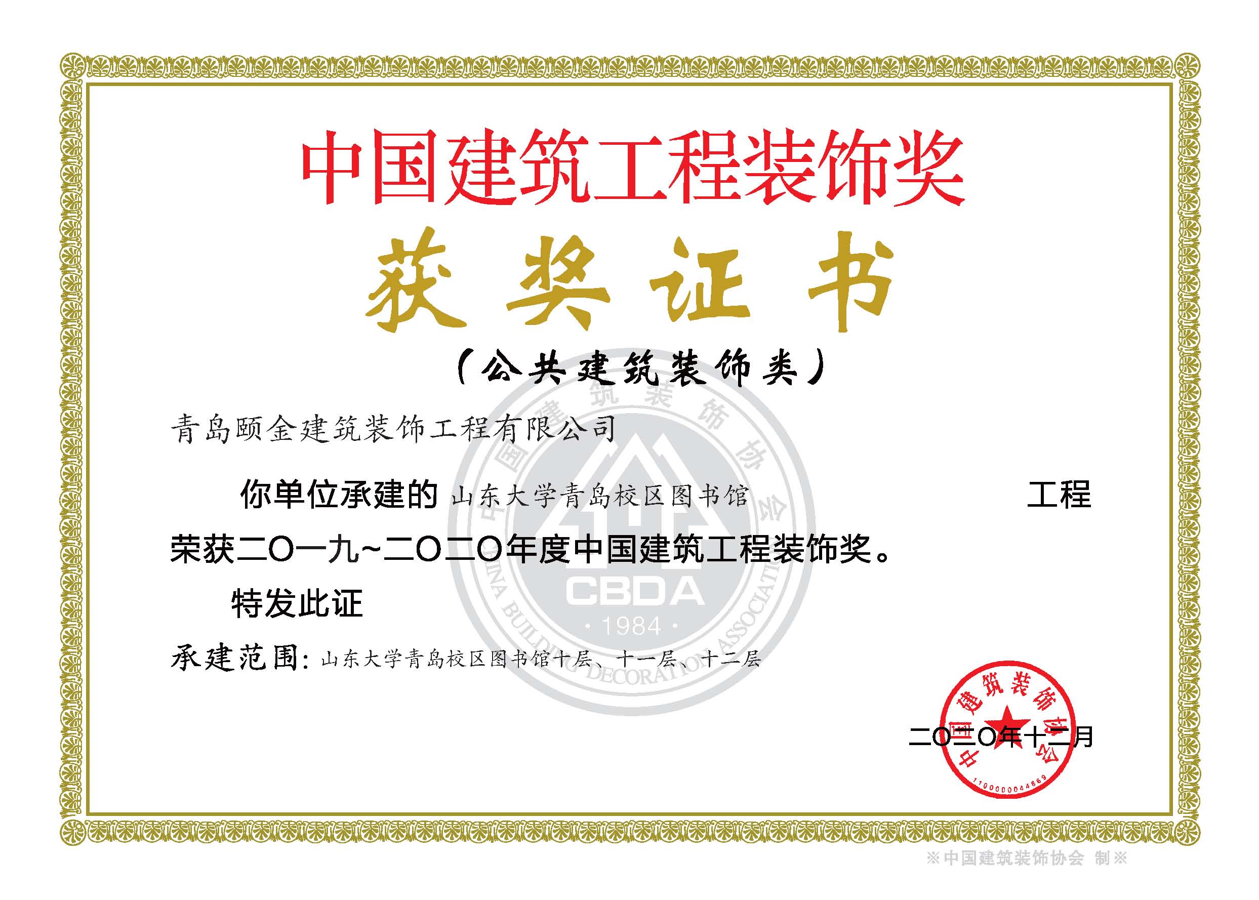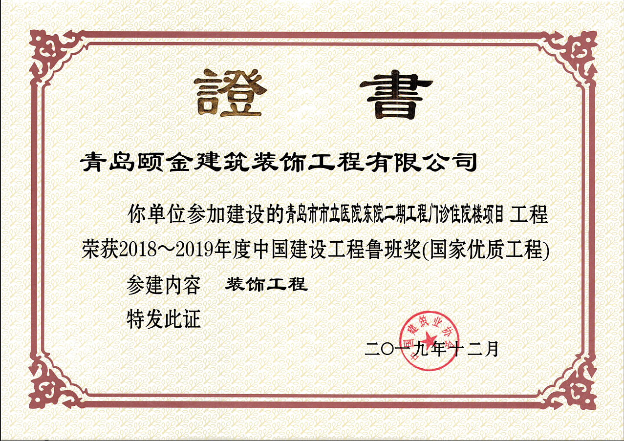 山東省裝飾裝修工程質(zhì)量泰山杯獎