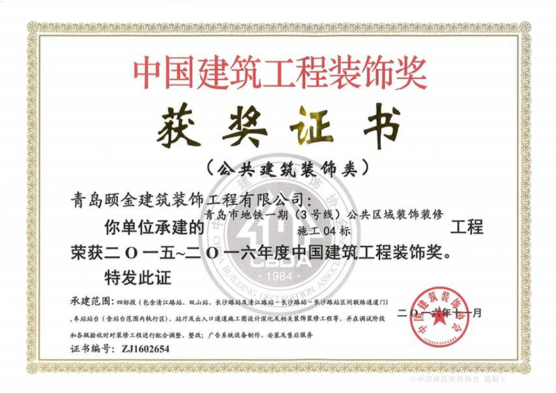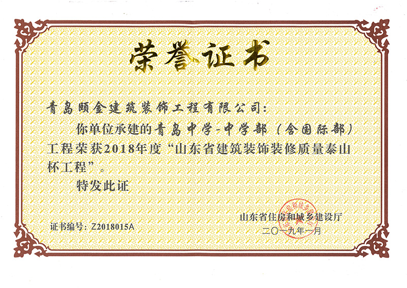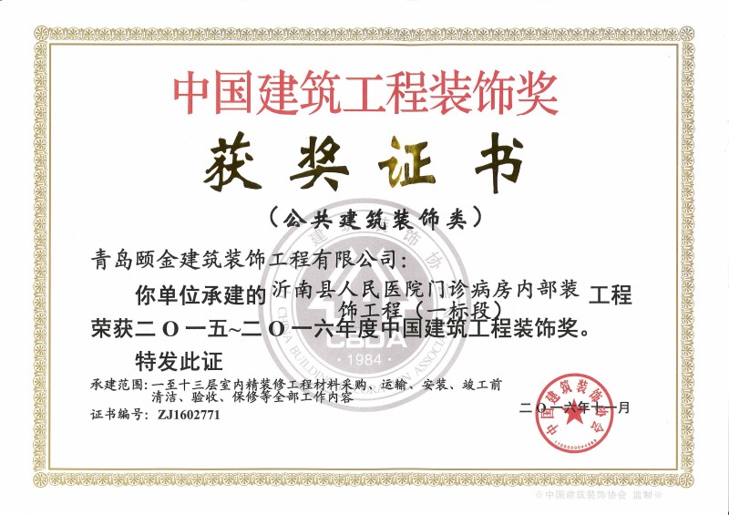 山東省裝飾裝修工程質(zhì)量泰山杯獎(jiǎng)